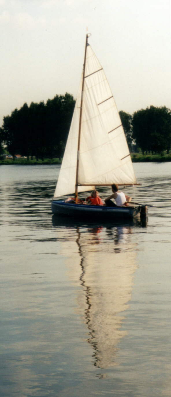 Als wir noch in Hamburg wohnten, haben wir deshalb mindestens den Rumpf aufgebaut im Garten gelagert und komplett auf dem Autodach befördert. Bis meine Frau streikte, denn es ist immer auch ein ziemliches Gewicht zu heben. (Übrigens tragen wir sogar die Packsäcke zu zweit.) Deshalb, und weil wir es hier in Süd-Limburg wesentlich weiter zum Wasser haben, liegt sie jetzt wie ein richtiges Boot auf einem Jollenplatz im Yachthafen Hatenboer in Roermond. |